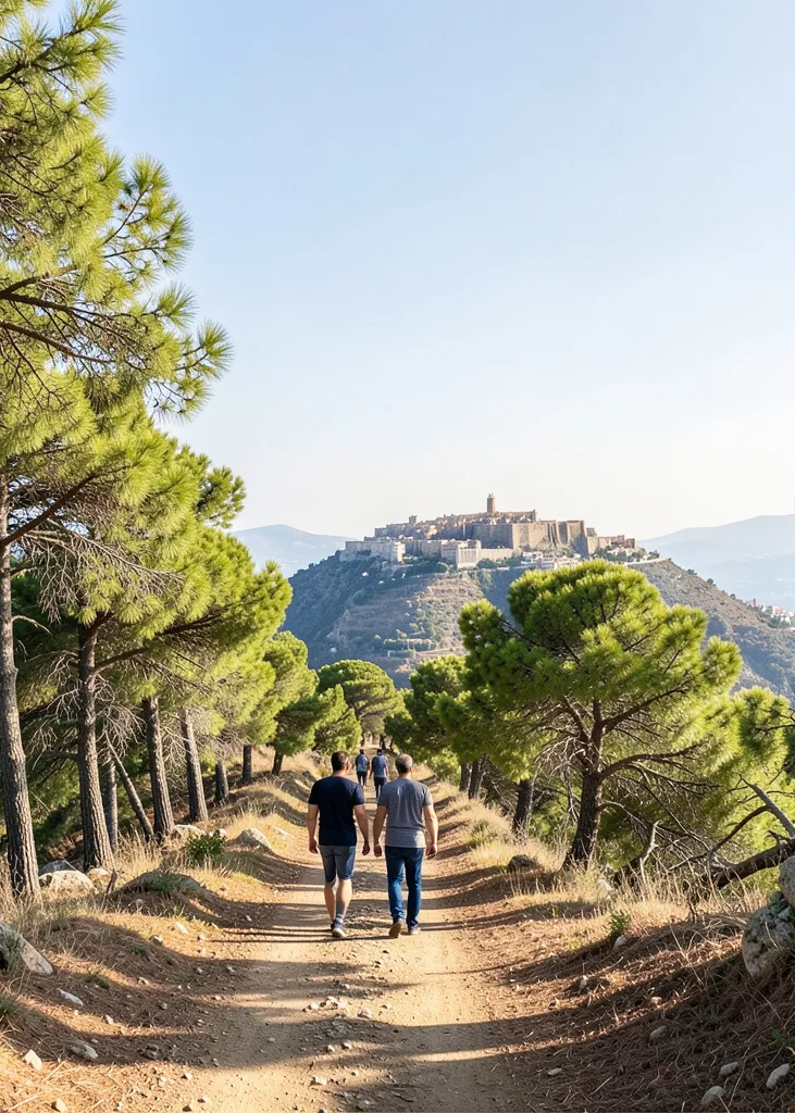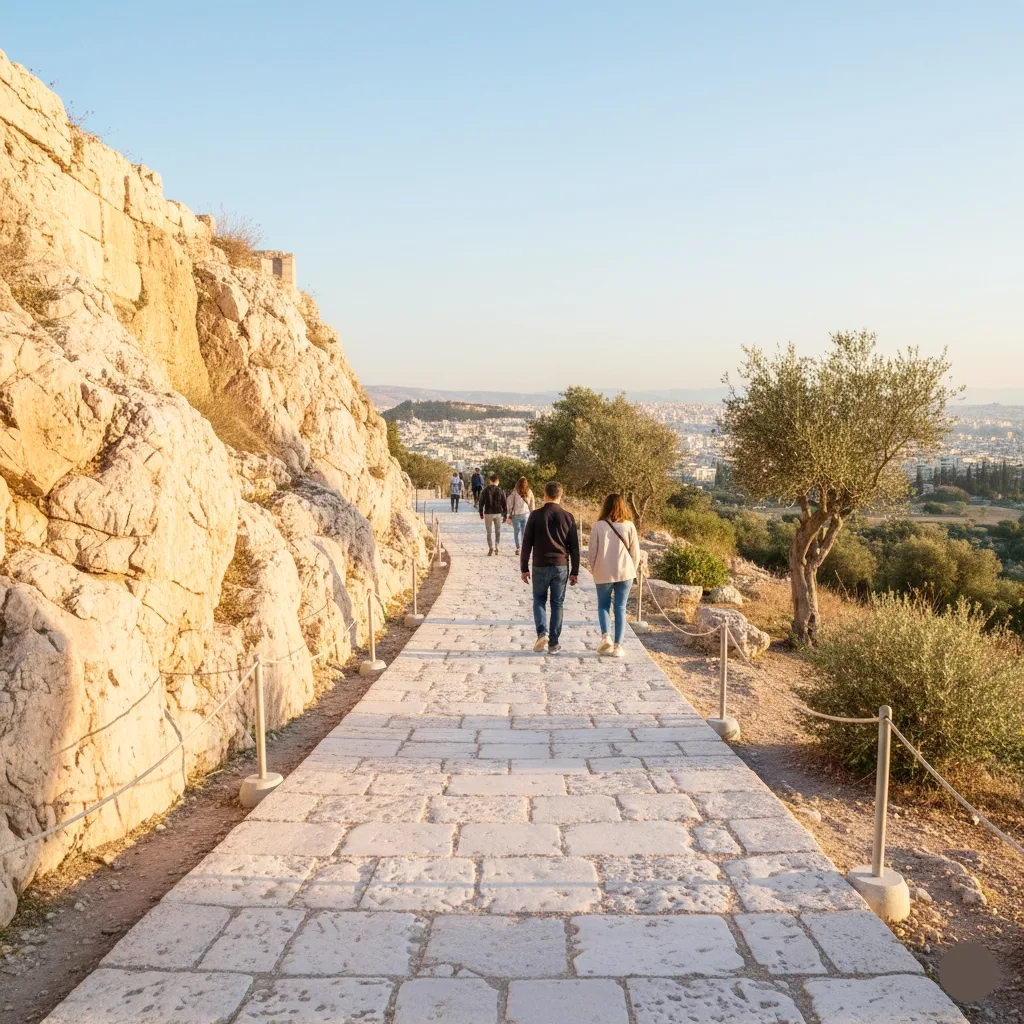 Sentiers sous les pins, vue sereine sur l’Acropole, ambiance locale. Une promenade idéale pour saisir Athènes dans une lumière douce et sans foule.
