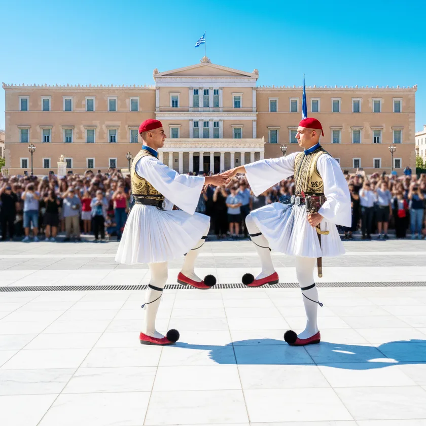 Toutes les heures, la relève de la garde rend hommage à la bravoure grecque face à l’occupation ottomane. En uniforme traditionnel, les evzones exécutent une chorégraphie héritée des régiments d’élite. Un rituel pour dire la résilience de l’Athènes moderne.