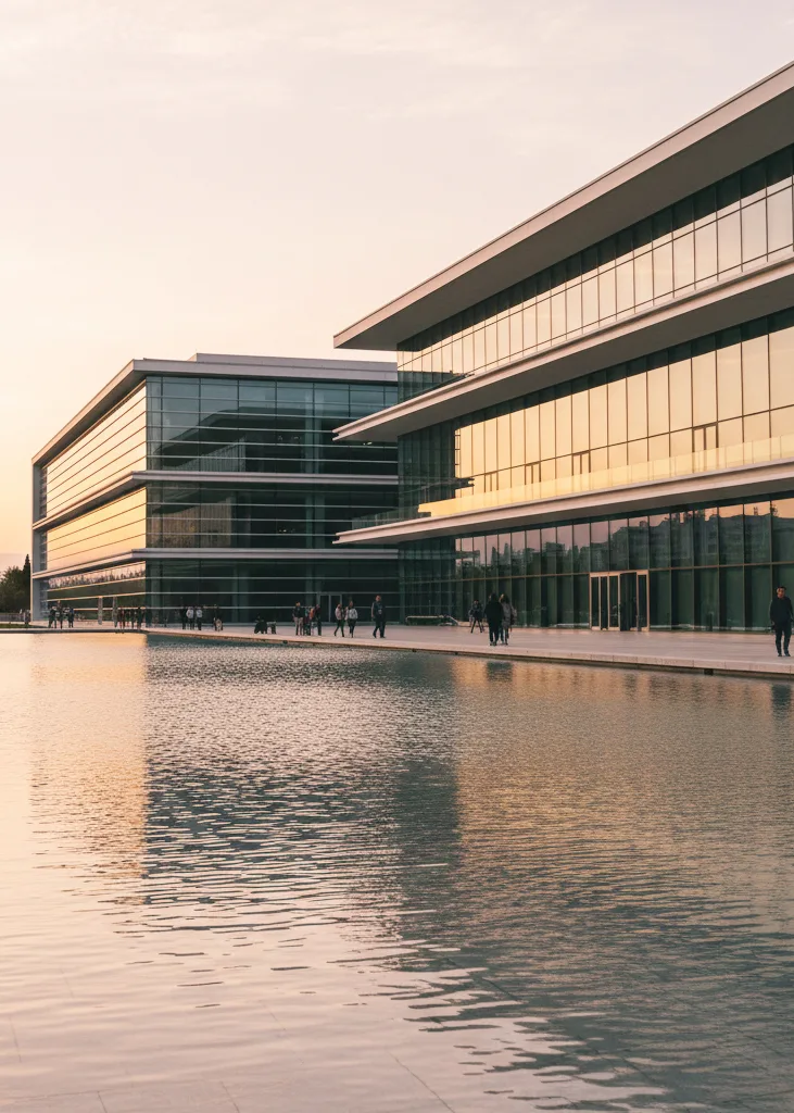 Épopée d’architecture contemporaine : jardins, terrasses, bassins et vue sur la mer. Un lieu où Athènes se réinvente entre culture, nature et lumière.
