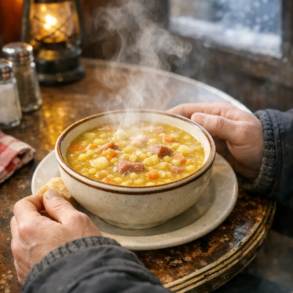 Epaisse et souvent préparée en grande quantité, la soupe aux pois accompagne les soirées froides depuis des générations. C’est une cuisine du quotidien, sans effet, qui réchauffe durablement et s’inscrit dans le rythme urbain de l’hiver montréalais.