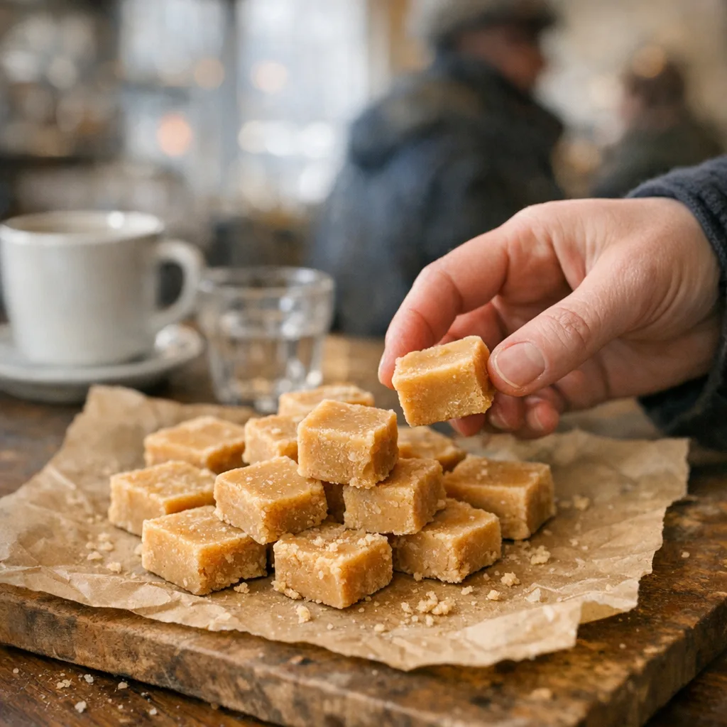 Le sucre à la crème Carré, fondant, assumé : la bouchée qui tient compagnie au café et aux fins de repas. On le trouve dans les boulangeries, les marchés, parfois en version artisanale, plus beurrée, plus dense. Une douceur simple qui fait plaisir sans mode d’emploi.