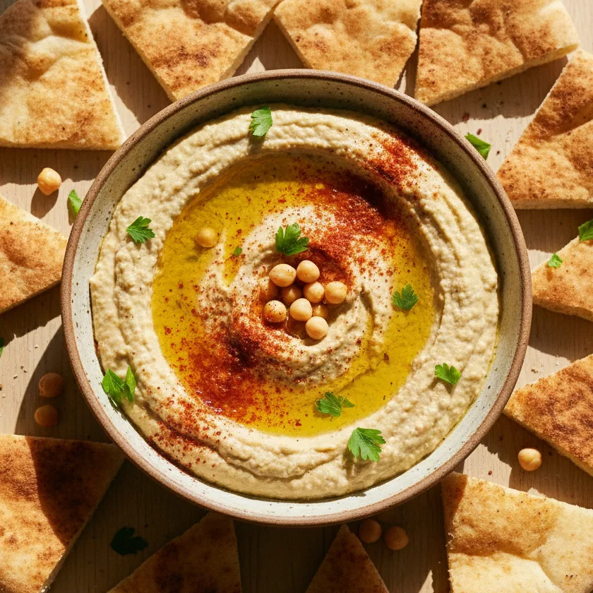 Crémeux, citronné, lisse comme un matin calme. Tu plonges un morceau de pita et tu comprends pourquoi ce simple mélange de pois chiches et de tahini est devenu un geste universel du partage libanais. Danger : on se ressert pour goûter « encore un peu » et on n’a plus faim pour le reste du mezze.