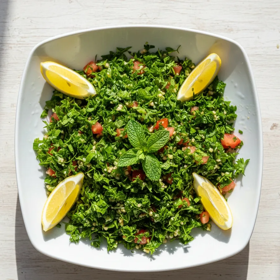 Ici, le persil est la star : frais, vif, presque croquant. Le taboulé libanais n’a rien d’une salade de semoule : c’est un bouquet d’herbes qui coupe la chaleur et ranime l’appétit. Si tu cherches la semoule, c’est que tu n’as sans doute pas encore vraiment rencontré un taboulé libanais.