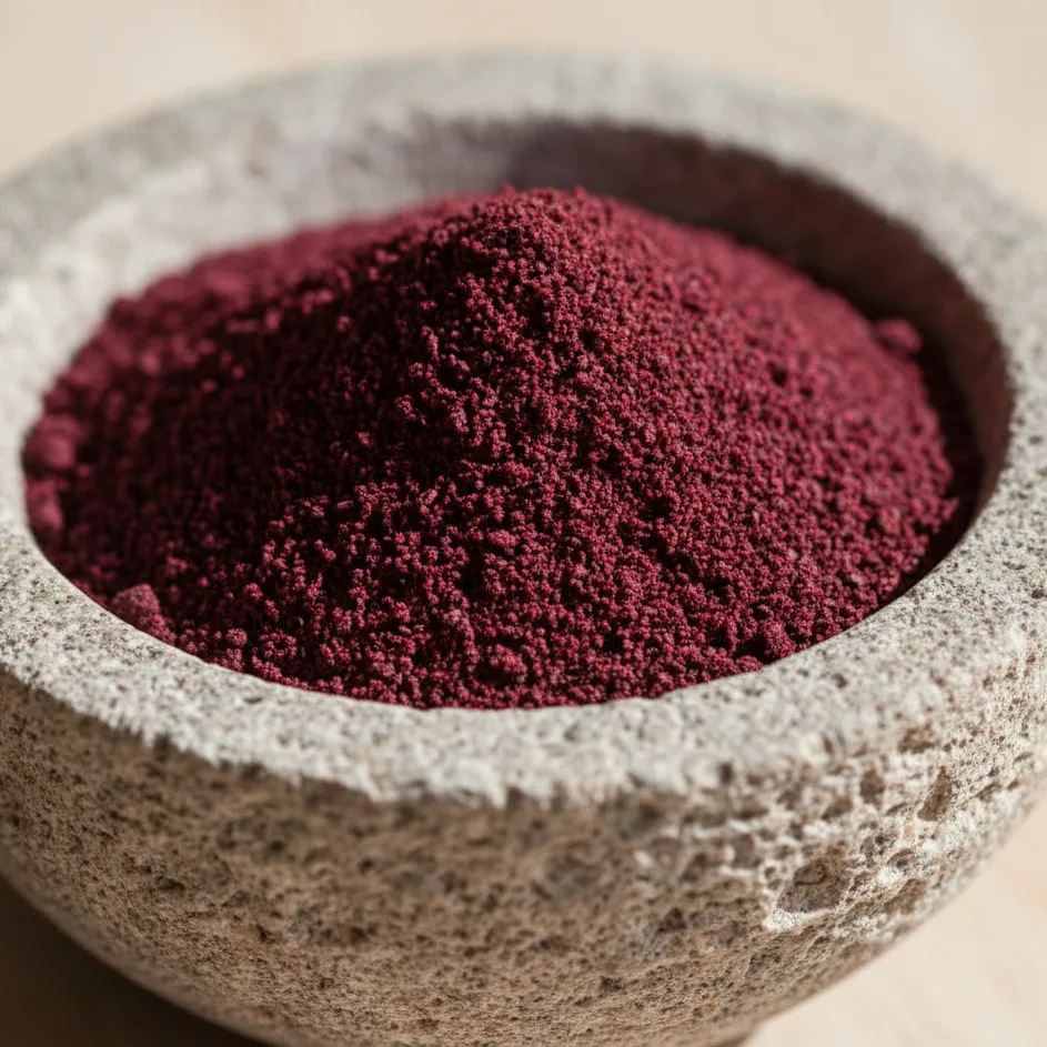 Rouge, acidulé, tannique : un nuage de sumac sur une salade ou un fattouche, et tu n’as plus besoin de vinaigrette. L’acidité méditerranéenne en poudre.