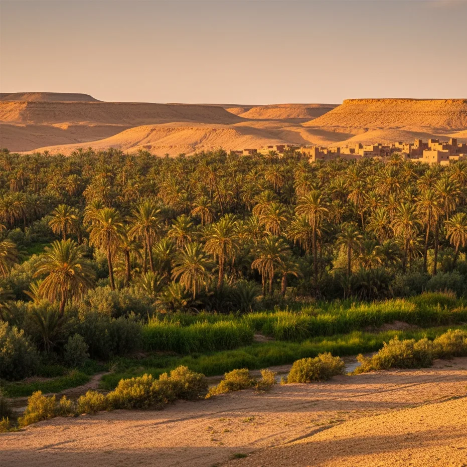 Au seuil du désert apparaissent palmeraies, kasbahs et ombres fraîches. Les tables s’y font plus sobres, mais chaque plat porte la douceur profonde des dattes et la générosité des maisons d’oasis.
