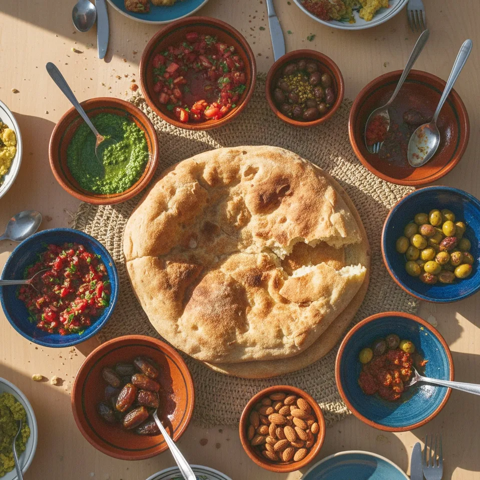 Tout finit par arriver au centre : les plats, le pain, les nouvelles du jour. Les tables marocaines aiment le bruit, les rires, les mains qui se tendent. C’est ici que la cuisine devient un espace de lien, plus encore qu’un art du goût.