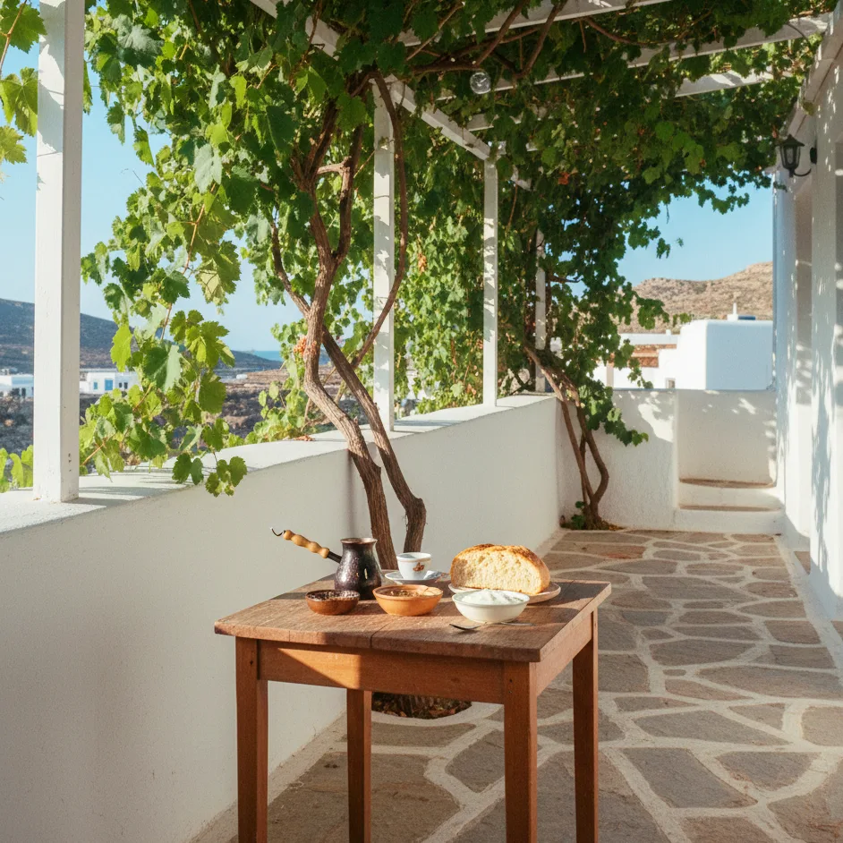 Aller très tôt prendre un café grec sous les tonnelles (avec pain, miel et yaourt).
