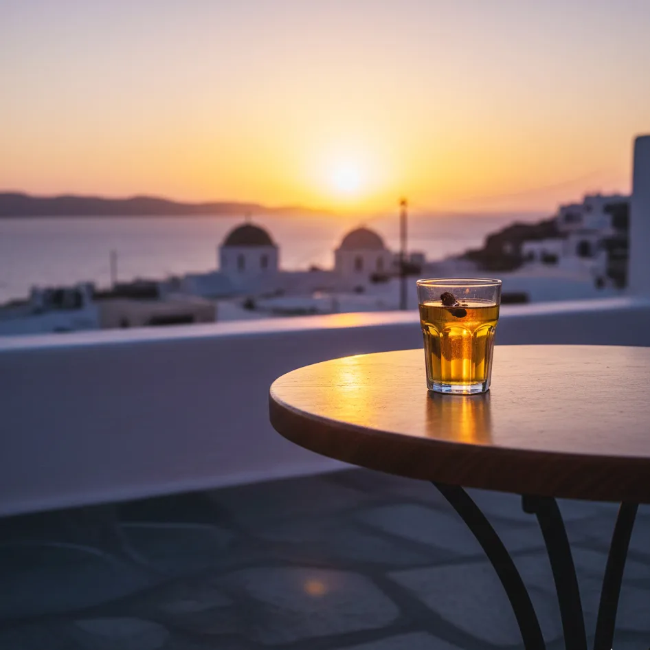 La boisson traditionnelle d’Amorgos, originaire de l’Antiquité, adoucie au miel, à la cannelle et aux clous de girofle ou à l’anis. Servie après le repas, elle se partage comme un secret ou une bénédiction, prolongeant la conversation quand la nuit s’installe.