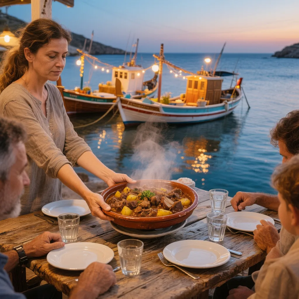 Parmi les plats identitaires, le patatato (un ragoût d’agneau aux pommes de terre) dit la patience des cuisines modestes. On déguste des câpres séchées qui claquent comme un grain de sel, un miel de thym presque ambré, arrosé d’un psimeni raki servi comme une poignée de main. Rien d’ostentatoire, rien de sophistiqué : une cuisine qui préfère la fidélité aux effets.