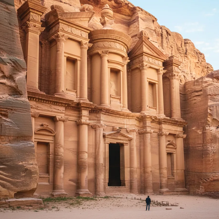 Visiter Petra, c’est découvrir, au sud de la Jordanie, un témoignage exceptionnel de l’ingéniosité architecturale et hydraulique de l’Antiquité. Classé UNESCO en 1985, ce site archéologique taillé dans le grès démontre, de ses canyons étroits à ses façades monumentales, la puissance d’une civilisation qui dompta un environnement aride pour fonder un empire caravanier. Depuis 2007, la cité rose fait partie des sept nouvelles merveilles du monde. Visite guidée.