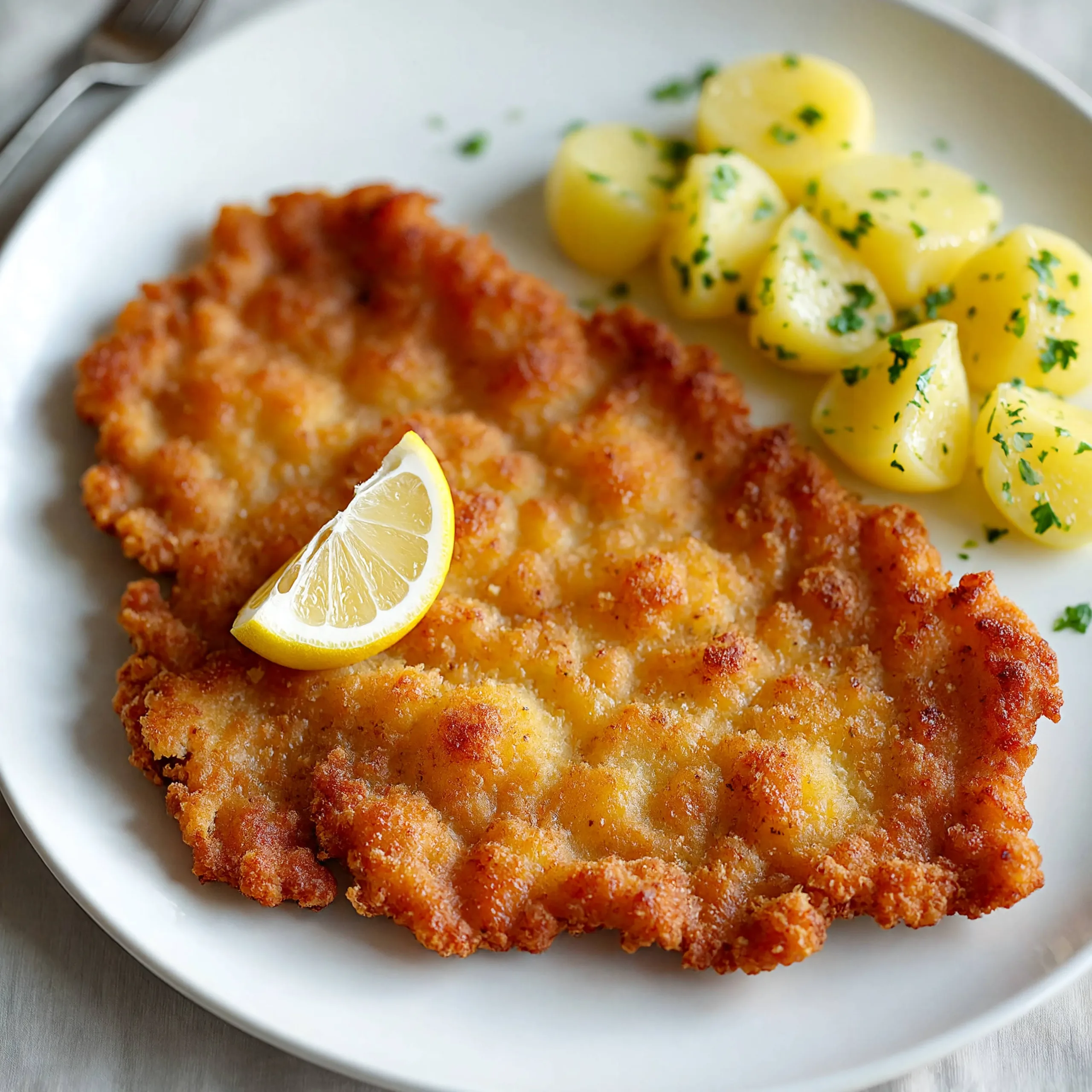 Wiener Schnitzel Un plat simple en apparence, exigeant dans son exécution. Le Wiener Schnitzel est une fine escalope panée, dorée dans le beurre et servie sans sauce, juste avec un citron et un accompagnement léger. Un plat rapide et délicieux à déguster entre deux visites.