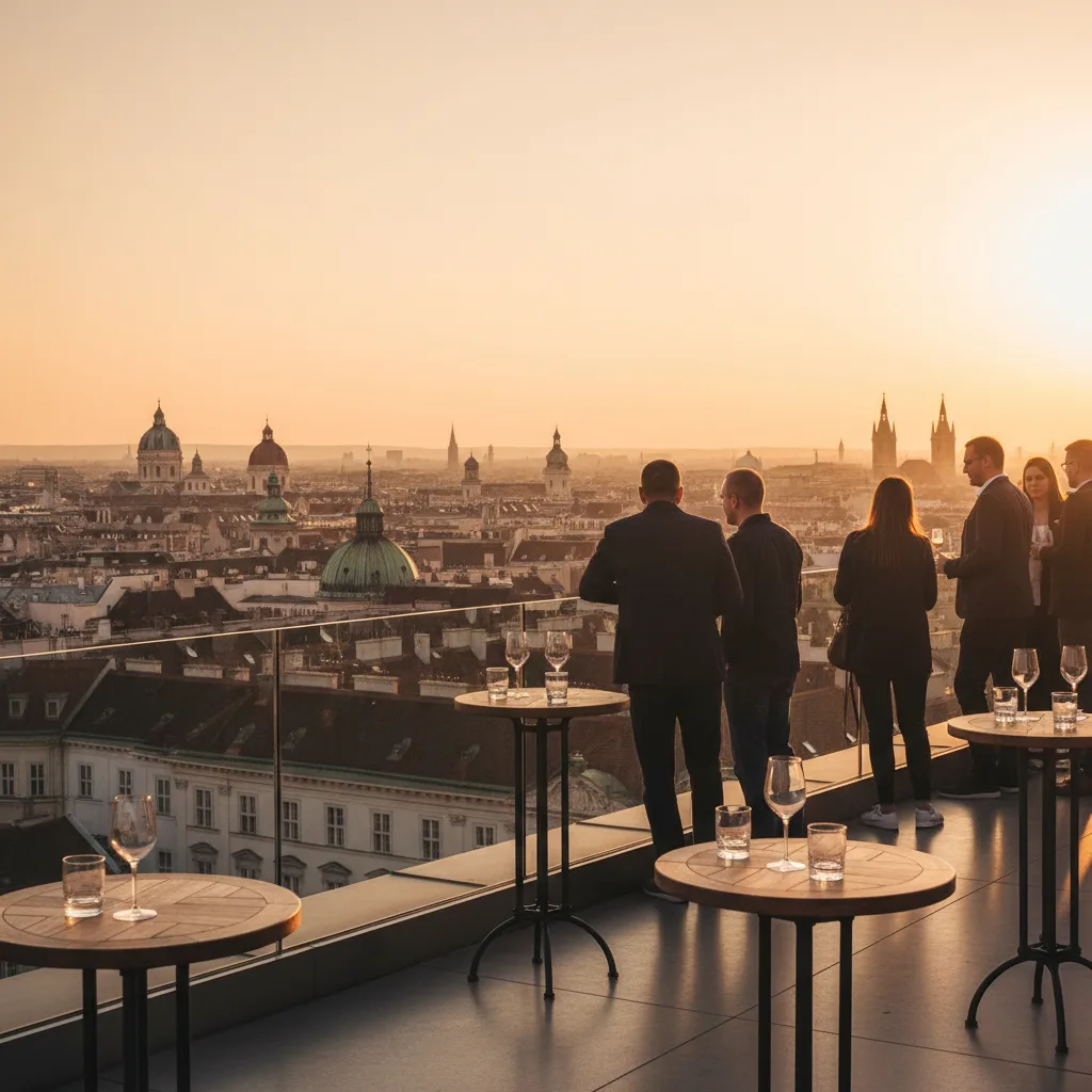 Pour une vue immédiate sans quitter la ville, vise un rooftop ou une terrasse haute en fin d’après-midi : lumière douce, toits alignés, verres qui s’entrechoquent, et ce moment où Vienne devient plus légère. Idéal après les musées, quand on veut changer de rythme sans reprendre un long trajet.