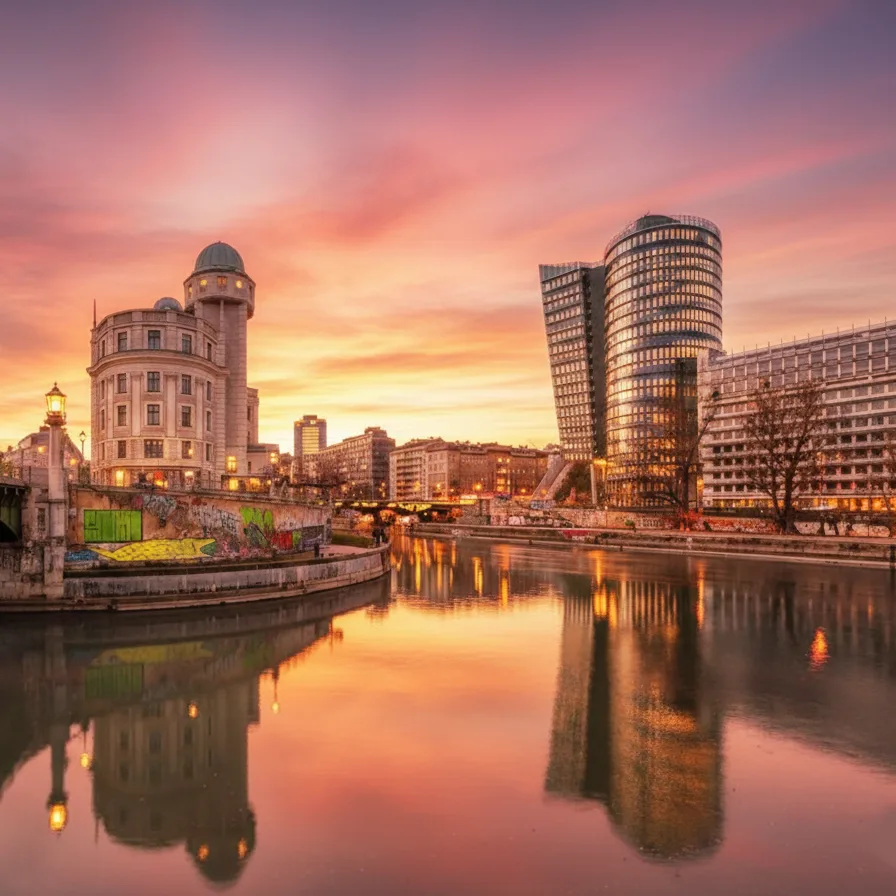 Loin du fleuve monumental, le Canal du Danube est un espace urbain vivant et animé, apprécié pour ses fresques de street art, ses terrasses et ses pistes cyclables. En fin de journée/début de soirée, il devient un lieu de rencontre prisé, parfait pour une promenade décontractée ou un verre au bord de l’eau.